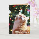 Cartão Gato Engraçado e Árvore Verde&Merry Christmas Únic