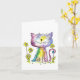 Cartão Gato Feliz Esbranquiçado e Bonito com Flores Amare