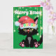 Cartão Gato negro engraçado Papai Noel apóia voa humor