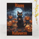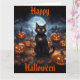 Cartão Gato Negro Spooky com Jack O'Lanterns