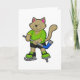 Cartão Gato no hóquei no gelo com taco de hóquei no gelo