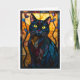 Cartão Gato Preto com Folhas em Estilo de Vitral
