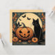 Celebre a temporada assustadora com estilo com este cartão de felicitações quadrado de 5,25" x 5,25" com uma ilustração ousada e estilizada de um gato preto e uma abóbora iluminada. Uma lua cheia luminosa se ergue ao fundo, lançando um brilho suave sobre os morcegos silhuetados enquanto voam pelo céu noturno, completando esta cena de Halloween perfeitamente sinistra. Este cartão é uma versão moderna da imagem tradicional de Halloween - partes iguais de assustador e charmoso, tornando-o uma escolha de destaque para os amantes de tudo o que é outubro e outono. A forma quadrada e elegante adiciona um toque contemporâneo, enquanto os motivos clássicos de Halloween lhe dão um apelo atemporal.