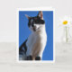 Gato Negro e Branco, Cartão de Saudação do Céu Azul. Você pode personalizar este produto gratuitamente se quiser adicionar texto ou alterar a cor do plano de fundo.