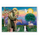 O santo Francis, uma figura amada que atravessa linhas denominacionais, é o santo paternalista dos animais. A figura mostrada aqui foi adaptada de uma obra-prima do século 14 por Giotto e inserida em um fundo original, aqui mostrado com um gato americano preto e branco de Curto-Cabelo.