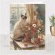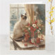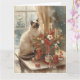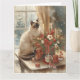 Cartão Gato Siames arranjando Flores Inverno Natal