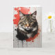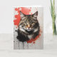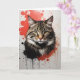 Cartão Gato Tabby em Aquarela Arte Salpicada Vermelho e P