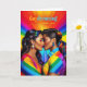 Uma bela carta para dizer que te amo no estilo da bandeira do arco-íris quando você escolhe esta saudação com duas mulheres hispânicas em um abraço amoroso e matizes do arco-íris ao longo de toda a sua vida.