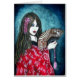 Pintura de mídia mista original usando aquarelas e lápis coloridas e tinta acrílica branca. Influência asiática de uma mulher que tem um fã. As cores ricas e velhas fazem disto um design de captura de olhos que é excelente para qualquer item.