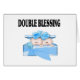 Twin Boys sentados em uma caixa de presentes azul. Uma dupla bênção para sure.artwork©delightful-doodles.com