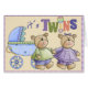 Um bebé e uma menina byby carregam com uma carruagem de bebê felicitar na chegada de bebês gêmeos. O wordart colorido ajusta-a fora, "mim" em "gêmeos" é um chocalho do bebê! Isto podia igualmente ser usado porque um cartão para anunciar o nascimento de dois bebês maravilhosos.