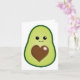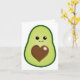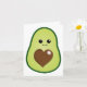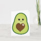 Um simples, mas fofo, qualquer uso, qualquer ocasião, um cartão de saudação com um adorável abacate verde kawaii com um rosto feliz e sua pedra marrom em forma de coração.