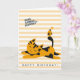 NewParkLane - Aí vem o problema! Cartão de Aniversário das Crianças Bonitas, com um doce desenho de gato adormecido em laranja e azul e um pequeno pássaro na cauda, contra um fundo listrado de laranja mole, e um modelo de texto para seu nome ou outra mensagem pessoal. Fácil de personalizar no Zazzle com seu próprio texto para um design personalizado. Todos os estilos de texto, cores, tamanhos podem ser modificados para ajustado das suas necessidades. Veja esta coleção para itens correspondentes! Você tem desejos pessoais específicos de design? Sinta-se livre para me contactar!