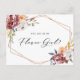 Você quer ser minha menina das flores? Peça a familiares e amigos para fazerem parte do seu casamento com este cartão personalizável de proposta para damas de honra. Ele apresenta ilustração em aquarela de flores marsala, laranja e branca com moldura geométrica em dourado rosa. Este cartão de proposta para damas de honra floral é perfeito para casamentos de outono. Itens combinando estão disponíveis.