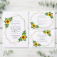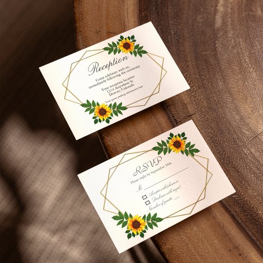 Design apresenta girassóis e folhas botânicas sobre uma imagem geométrica dourada impressa.