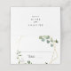 Este cartão de casamento verde-tropical de ouro geométrico é perfeito para um casamento moderno. A design apresenta lindas folhas verdes pintadas à mão, enfeitando um quadro geométrico dourado. Personalize a parte de trás do cartão de lugar com os nomes da noiva e do noivo e a data.