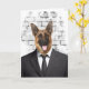 Cão german shepherd de terno preto no esboço de tijolos para o aniversário geral.