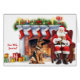 A frente deste cartão de saudação de Natal tem uma imagem de um lindo Cachorro German shepherd que encontrou Papai Noel descansando ao lado da lareira bizarra depois de entregar os presentes da família. Os papais noeis têm um último pacote, e o cão olha com expectativa para ele. O texto ao lado diz "Para mim, Papais noeis?" Todo o texto, dentro e saída é personalizável, então você pode alterá-lo ou adicioná-lo, se quiser. Veja mais imagens de Cachorro German shepherd, junto com dezenas de outros produtos da raça canina, na Vila dos Cachorros.