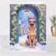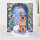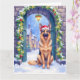 Cartão German Shepherd Snowy Town Gate Santa Christmas