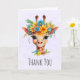 Cartões de agradecimentos com uma ilustração de aquarela branca com uma face de girafa vestindo uma coroa primavera bonito floral. Colorida e fofa.