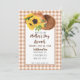 O bonito rustic & country Dia de as mães Brunch convida a apresentar fundo gingham com girassóis e chapéu de cowboy de cor d'água. Personalize com o brunch ou reúna os detalhes. Disponível como um cartão padrão e um download digital para compartilhar nas mídias sociais.