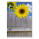 Girassóis amarelos brilhantes pendurados sobre a cerca de madeira.