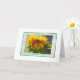 Um cartão de nota com uma bela luz apanhando o girassol pronto para ir ao cheio dentro de um quadro branco e verde. O cartão diz May your day be bright e linda em uma fonte verde para combinar com o quadro verde.
