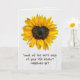 Girassol amarelo com coração e citação inspiradora para pensar em você.