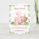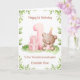 Cartão Girl 1st Birthday Greenery Teddy Bear Card