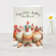 Galinhas vestindo óculos vestidos e colares de pérolas para humor de aniversário. Todo o texto pode ser alterado.