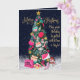 Este cartão de saudação de Natal giro e glamouroso será a conversa de todos os seus amigos e familiares. É um conceito único e na moda para o seu papelão de férias. Apresenta bolsas de aquarela desenhadas à mão e pintadas à mão, calçados de salto alto, ornamentos falidos, maquiagem, garrafas de perfume, carteiras, canetas doces, saco de presentes e caixa de presentes. Estes elementos estão pendurados numa árvore de Natal verde e nevada com uma ponta superior de estrela dourada. O fundo é um céu escuro azul-água, cor-d'água, noite, com neve torta caindo no chão. A paleta de cores inclui pinks brilhantes, pinks de pincel, pinks de coral, preto, ouro, prata, vermelho, pêssego, verde-floresta e branco. É uma bela, chic, e design de tendências para a moderna moda que está infundada com espírito de feriado! ***NOTA DE DESIGN IMPORTANTE: Para qualquer solicitação de design personalizada, como solicitações de correspondência de produtos, alterações de cor, mudanças de posicionamento ou qualquer outra solicitação de alteração, clique no botão "CONTACT" ou envie um e-mail ao designer diretamente em lafemme.art@gmail.com. Você pode até enviar um e-mail para ela solicitando um design completamente personalizado e novo.