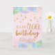 Um famoso cartão de aniversário de 100 anos feliz. Esta bela placa Glam apresenta estrelas douradas e balões iridescentes pastéis. Pode ser personalizado para qualquer idade e personalizado alterando o nome e o dentro de mensagens que lê atualmente os Parabéns " neste marco incrível. Que este dia esteja cheio de sol e sorrisos, risos e amor. Tenha um feliz centésimo aniversário!