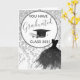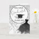 O Vestido Elegante De Glitérica Silver Que Você Tem Cartão De Graduação. Com texto escrito à mão, belo vestido de design gráfico preto, e chapéu de graduação profissional com design gráfico de diploma. Dentro tem o mesmo design gráfico visual e texto preto: "Parabéns - agora você pode vestir o vestido". Entre em contato comigo se tiver algum problema em personalizar seu cartão. @Miri Creations - Criado Apenas Para Você. Todos os direitos reservados.
