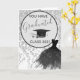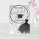 O Vestido Elegante De Glitérica Silver Que Você Tem Cartão De Graduação. Com texto escrito à mão, belo vestido de design gráfico preto, e chapéu de graduação profissional com design gráfico de diploma. Dentro tem o mesmo design gráfico visual e texto preto: "Parabéns - agora você pode vestir o vestido". Entre em contato comigo se tiver algum problema em personalizar seu cartão. @Miri Creations - Criado Apenas Para Você. Todos os direitos reservados.