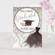 O Vestido Elegante De Glitérica Silver Que Você Tem Cartão De Graduação. Com texto escrito à mão, belo vestido de design gráfico preto, e chapéu de graduação profissional com design gráfico de diploma. Dentro tem o mesmo design gráfico visual e texto preto: "Parabéns - agora você pode vestir o vestido". Entre em contato comigo se tiver algum problema em personalizar seu cartão. @Miri Creations - Criado Apenas Para Você. Todos os direitos reservados.