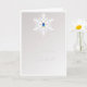 Floco de neve 3D com bifurcação em cinzas prateadas suaves e quadrado branco com gota e estrutura gelada. Dentro verso. Este cartão é popular.