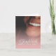 Glücklich, Dir, instinto! Kompliment Karte mit lachendem Frauengesicht und handschriftlichen Grüßen auf der Vorderseite der Karte. Restliche Flächen stehen zur freien Verfügung.
