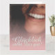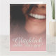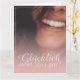 Glücklich, Dir, instinto! Kompliment Karte mit lachendem Frauengesicht und handschriftlichen Grüßen auf der Vorderseite der Karte. Restliche Flächen stehen zur freien Verfügung.