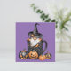 cartão feliz halloween com gnomo dentro de uma caneca de aranha