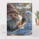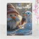 Cartão Gnomo Adorável e Boneco de Neve em um País das Mar