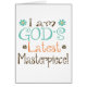 Última obra-prima dos Deuses. Design bonito e adorável lê como "Eu sou a mais recente obra prima de Deus". Disponível em crianças e roupas para bebês, t-shirts de mulheres e outras mercadorias. Isto é um presente excelente para chás de fraldas também!