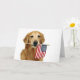 Comemore 4o julho com um cartão adorável da foto de nossa coleção de SNAPshotz. Este cartão do Dia da Independência caracteriza um golden retriever doce que guardara uma bandeira americana.