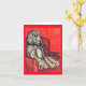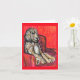 Este é um cartão que retrata um Goldendoodle entediado sentado numa cadeira, esperando a festa começar. A festa pode ser de qualquer tipo.