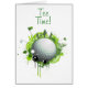 Ilustração moderna com golfe como tema. Uma bola de golfe representa a Terra com golfistas e bandeiras ao seu redor em tons de verde. Diversão e design moderna para o amante do golfe.