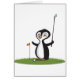 Uma imagem do divertimento de um pinguim que joga o golfe. Dianteiro!