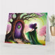 Op de wenskaart staat een afbeelding van een vrouw, haar figuur deels verborgen terwijl ze naast een majestueuze boom staat. De nadruk ligt op de achterkant van de vrouw, wat een gevoel van mysterie en verwachting oproept. De boom, met een deur die in zijn bast lijkt te zijn geïntegreerd, symboliseert mogelijk een ingang naar nieuwe mogelijkheden en avonturen. Onder de afbeelding staat de eenvoudige, maar krachtige boodschap "Good Luck" geschreven, waarmee de wens van geluk en succes wordt overgebracht aan de ontvanger.