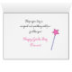 Um cartão feliz para uma ocasião muito feliz. Uma varinha mágica cor-de-rosa é mantida por uma bela princesa que quer desejar um feliz Dia de Apanho para sua garotinha.