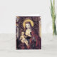 Esta é uma representação gótica única e bonita do século 15 da Madonna e da criança. A Madonna, sentada sobre uma arremessada típica da era do Gótico, veste uma coroa de joias e tem um grande halo amarelo. Ela está se preparando para amamentar a criança Cristo que tem seus olhos fixados nos anjos para o seu lado.