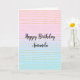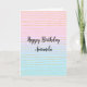 Cartão de aniversário com um legal padrão de abstrato. Gradiente de pasta, cor rosa e azul, com faixas finas de ouro. As faixas/linhas de ouro são uma falsa brilha dourada.