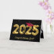 Balões de folha de ouro para graduação em 2025 em fundo preto com boné vermelho e confete de ouro. A cor preta do plano de fundo pode ser alterada.